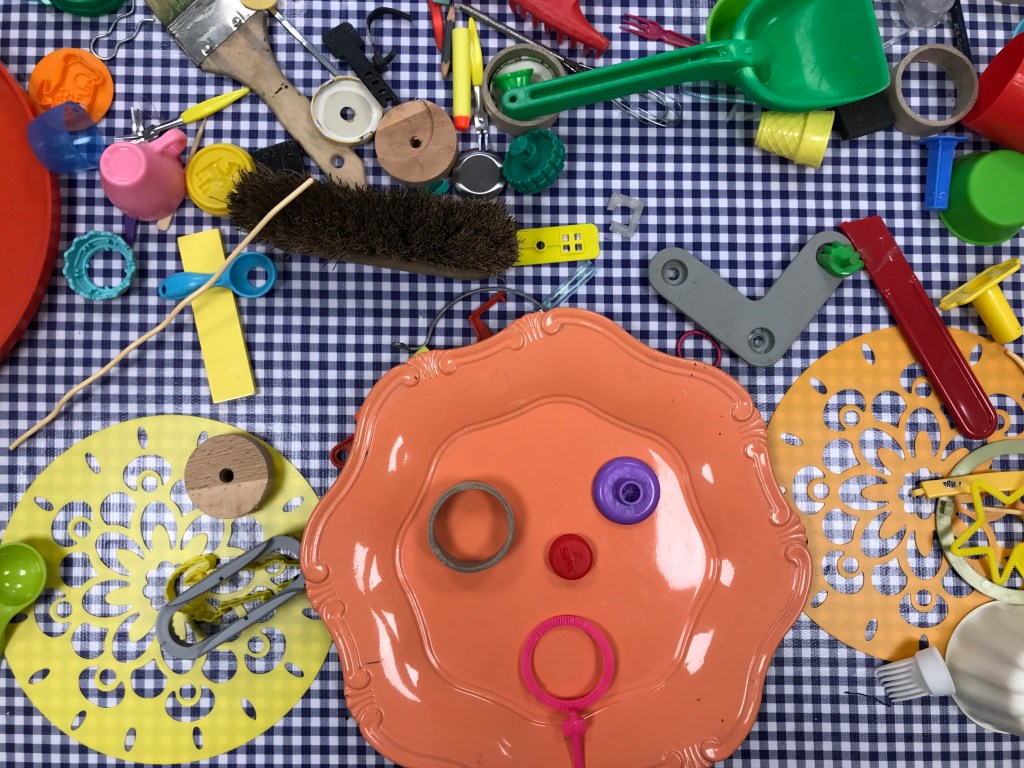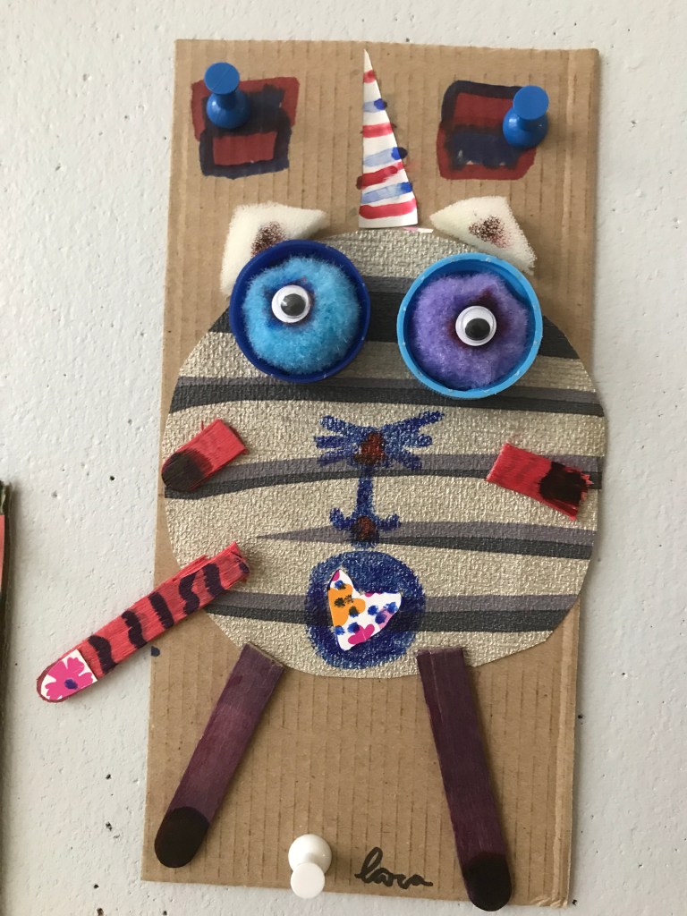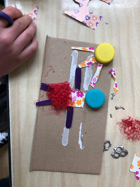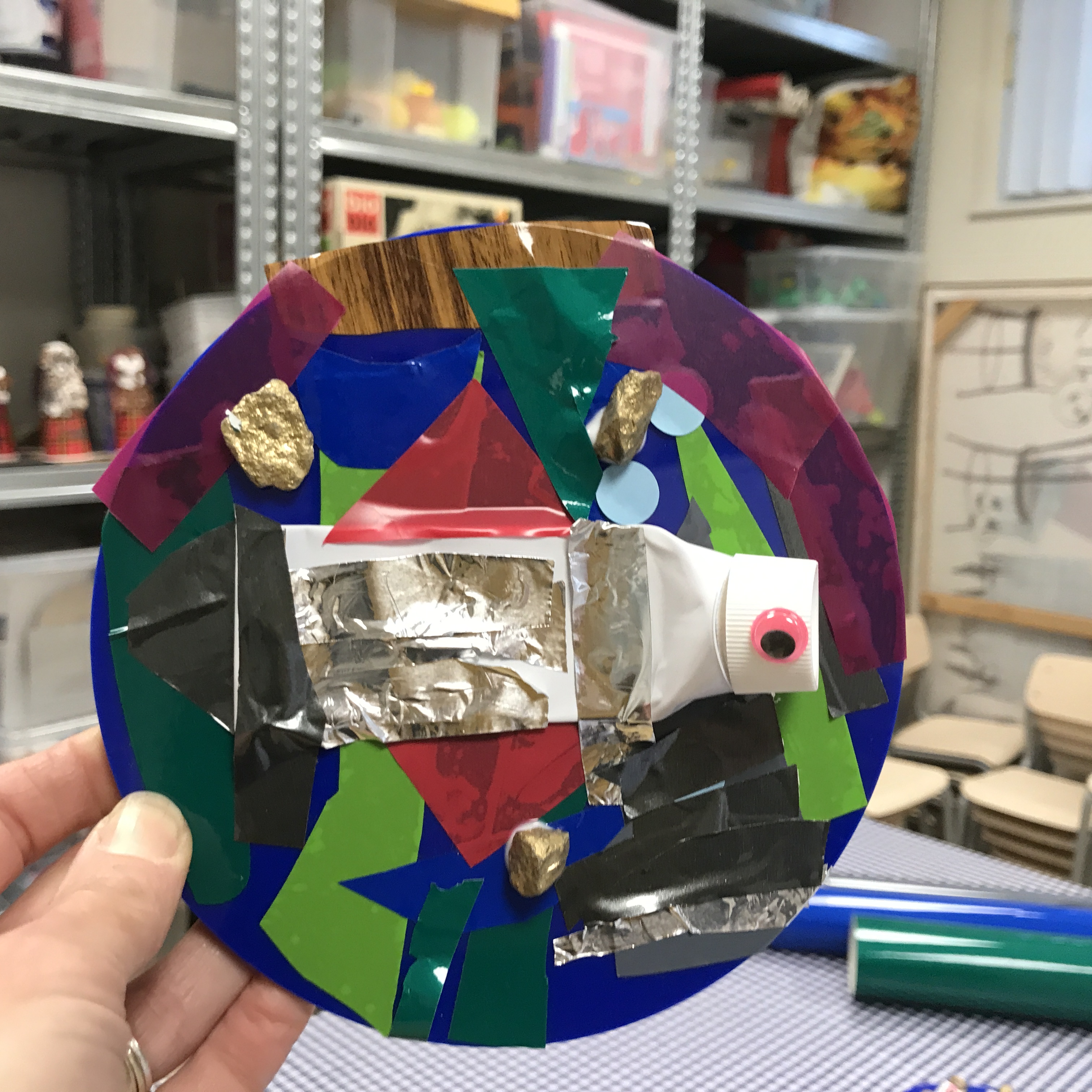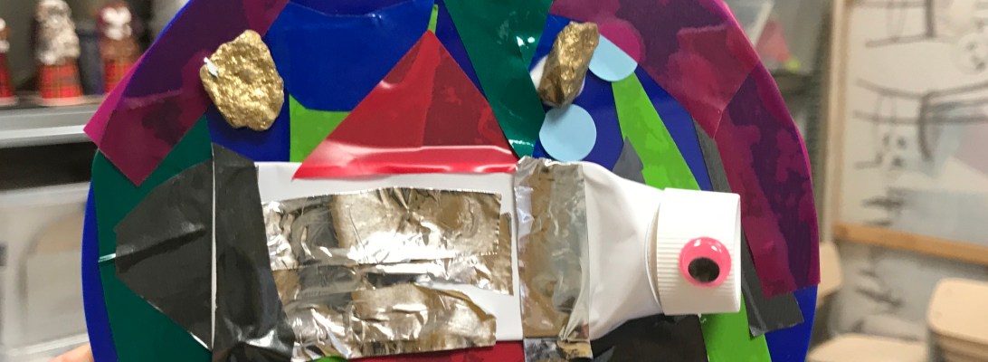 Bij 1/2C werden vanochtend assemblage gezichten gemaakt. Met tafel vol kleurig plastic troepjes werden de vrolijkste karakters bij elkaar gepuzzeld!