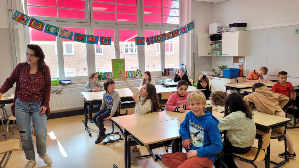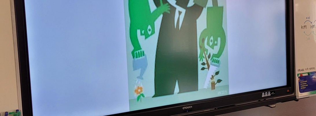 Vandaag kregen de kinderen een les van juf Nathalie. Deze les ging over het werk van kunstenaar en illustrator van Max Kisman. De kinderen hebben naar zijn werk gekeken en samen de boodschap bij iedere illustratie onderzocht. Vervolgens werden er bijpassende zinnen bij bedacht!