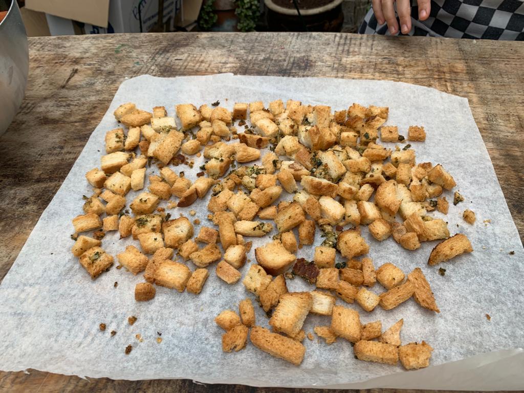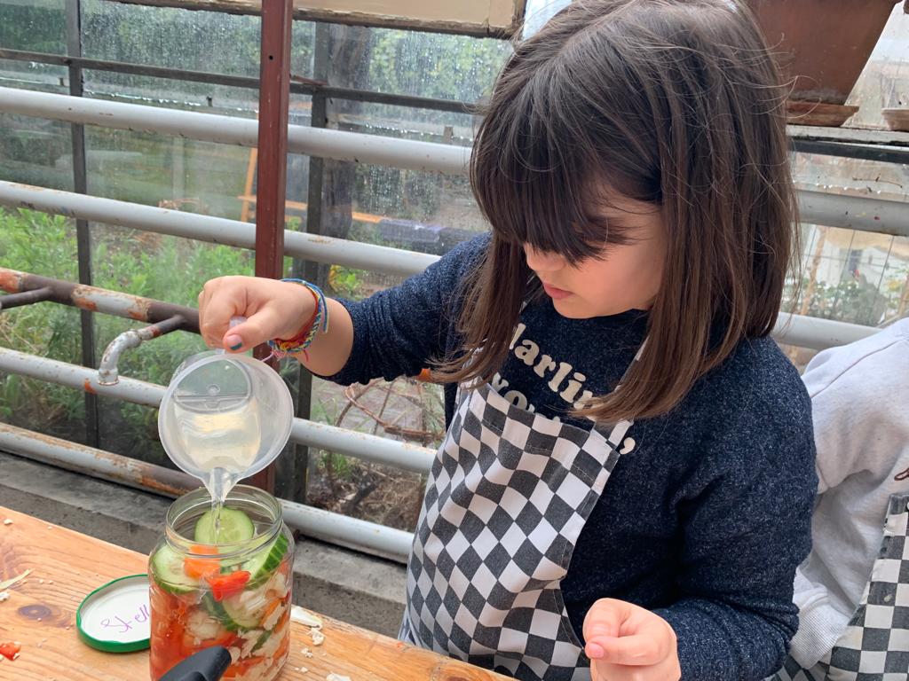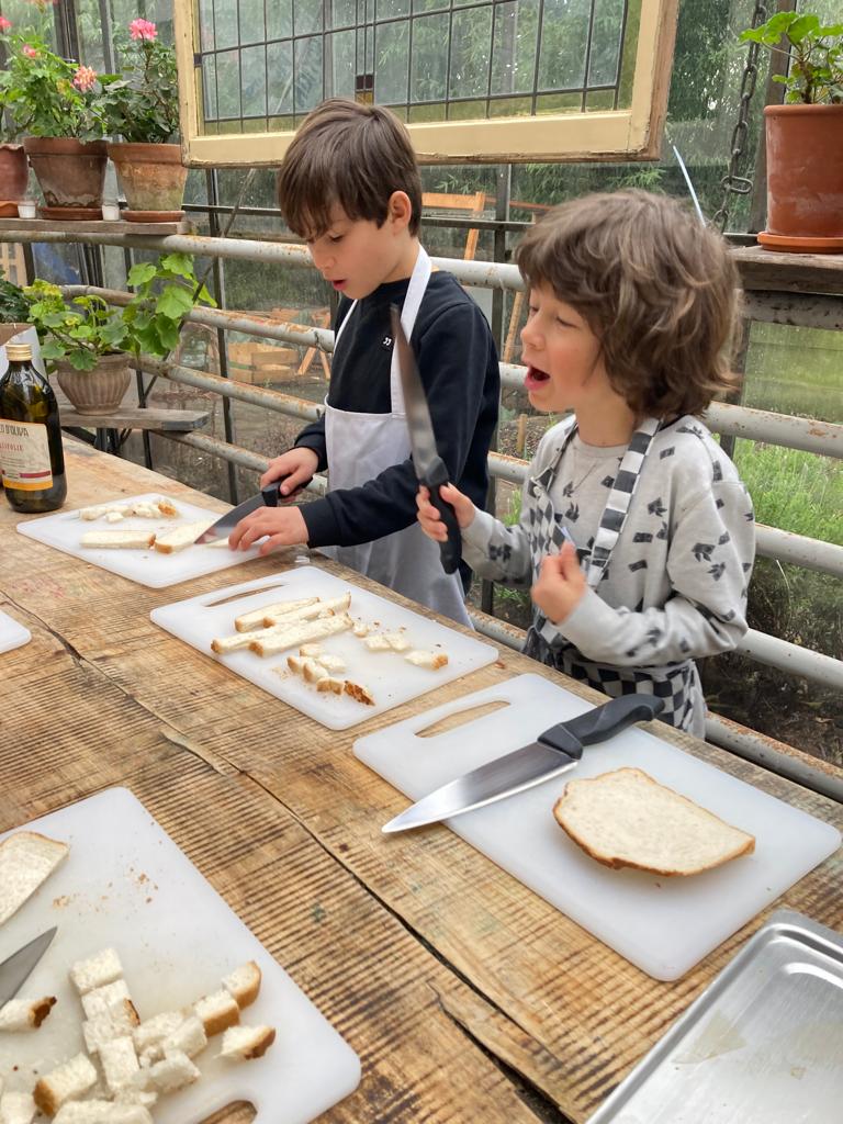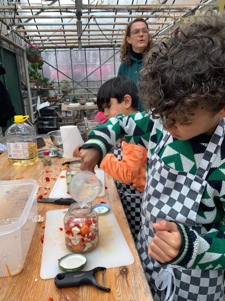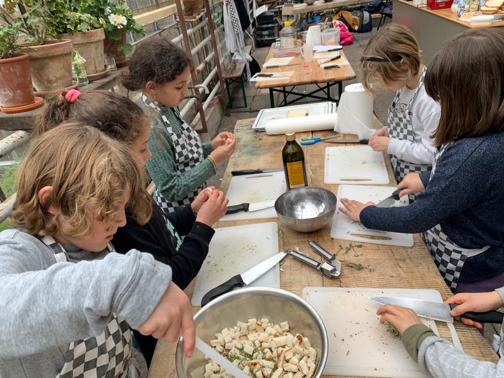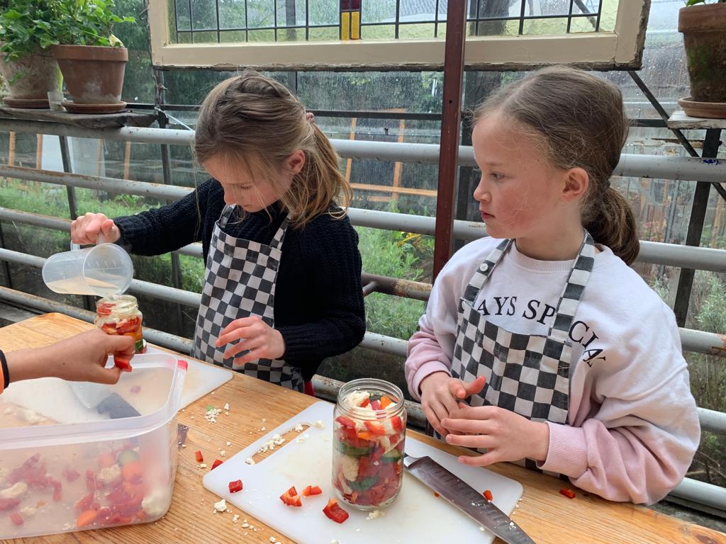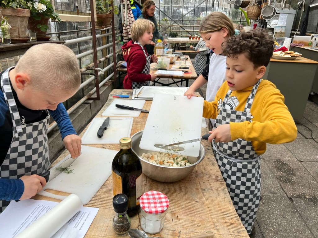 5B ging koken in Kas Keerweer, bij juf Hiske! Bananenpannekoekjes, kruidige croutons en een pickles van groenten. Jammie! De recepten gaan straks in het Kliekjeskookboek van de klas!