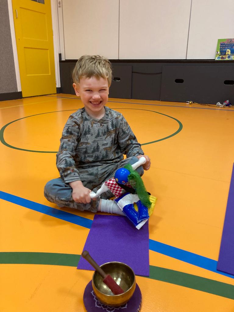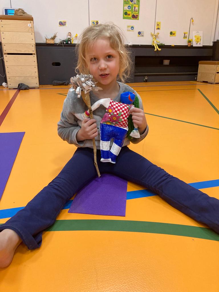 Op deze donderdagmiddag had juf Mascha wel heel bijzondere gasten bij haar yogales. Lapje en Stiekje, onze recyclemascottes bij de groepen 1/2, mochten mee naar de yogales! Op hun eigen kleine yogamatjes en met gerecyclede attributen mochten ze mee doen met de yogaoefeningen die in het teken staan van de lente.