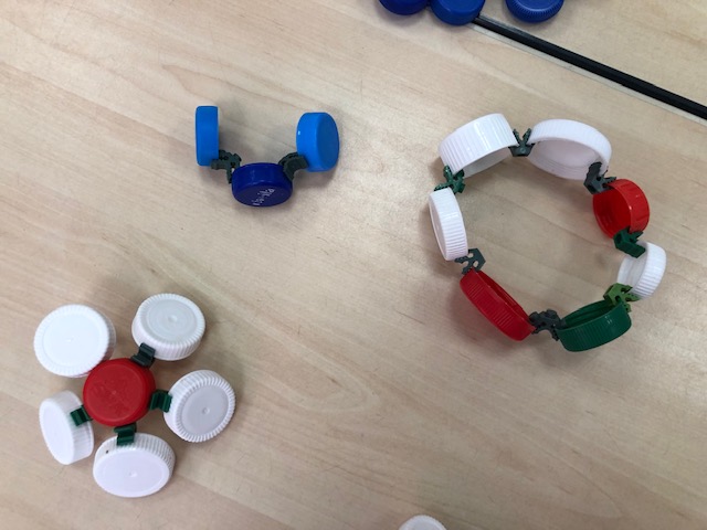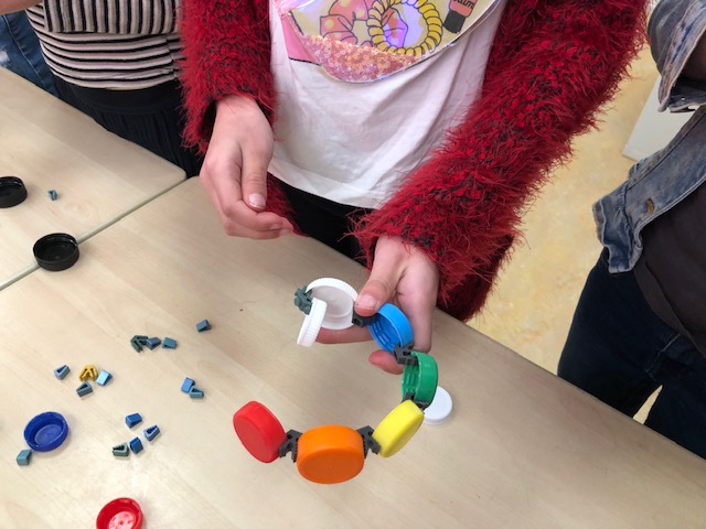 Met de vele dopjes die we hebben verzameld tijdens de eerst editie van de St.Janrecyclefabriek kun je van alles doen. Groep 4B gingen aan de slag met “Clip-it”, handige clips waarmee je plasticdopjes aan elkaar kan bevestigen en de mooiste objecten kan bouwen.