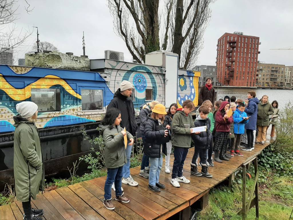 Beide groepen doen deze projectweken onderzoek naar de circulaire economie. Dus Puck’s verhaal was meer dan interessant en er werden goede vragen gesteld. Dank dat je er was, Puck!