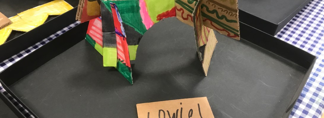 Vandaag werd er in groepjes gebouwd aan kartonnen sculptuurtjes door 4A. Eerst 5 stukjes voorzien van vrolijke patroontjes met markers en viltstiften en daarna om beurten bouwen aan het sculptuurtje. Wat een pracht exemplaren zullen er straks staan te pronken in ons museum!
